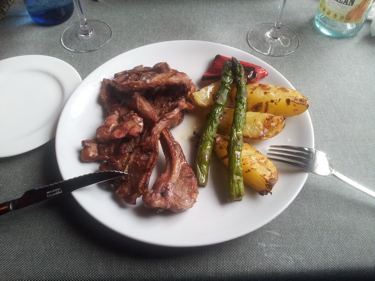 Вчера взял там попробовать самые обычные бараньи ребрышки на гриле. Блюда с гриля подаются в простом варианте оформления - никаких тебе изысков. Вроде все очень просто, но баранина была фантастически вкусная! Также спаржа и картошка поливаются маслом со специями и как-то хитро обжариваются - тоже очень интересные. Но баранина... Хотел бы я научиться ее так готовить. Спросил у официанта, как они делают эту баранины - готовят в каком-то маринаде или что? Ответили, что никакие маринады вообще не используются: только хорошее свежайшее мясо, правильный гриль, немного специй и руки повара, более ничего. Все понял, пошел затачивать руки...