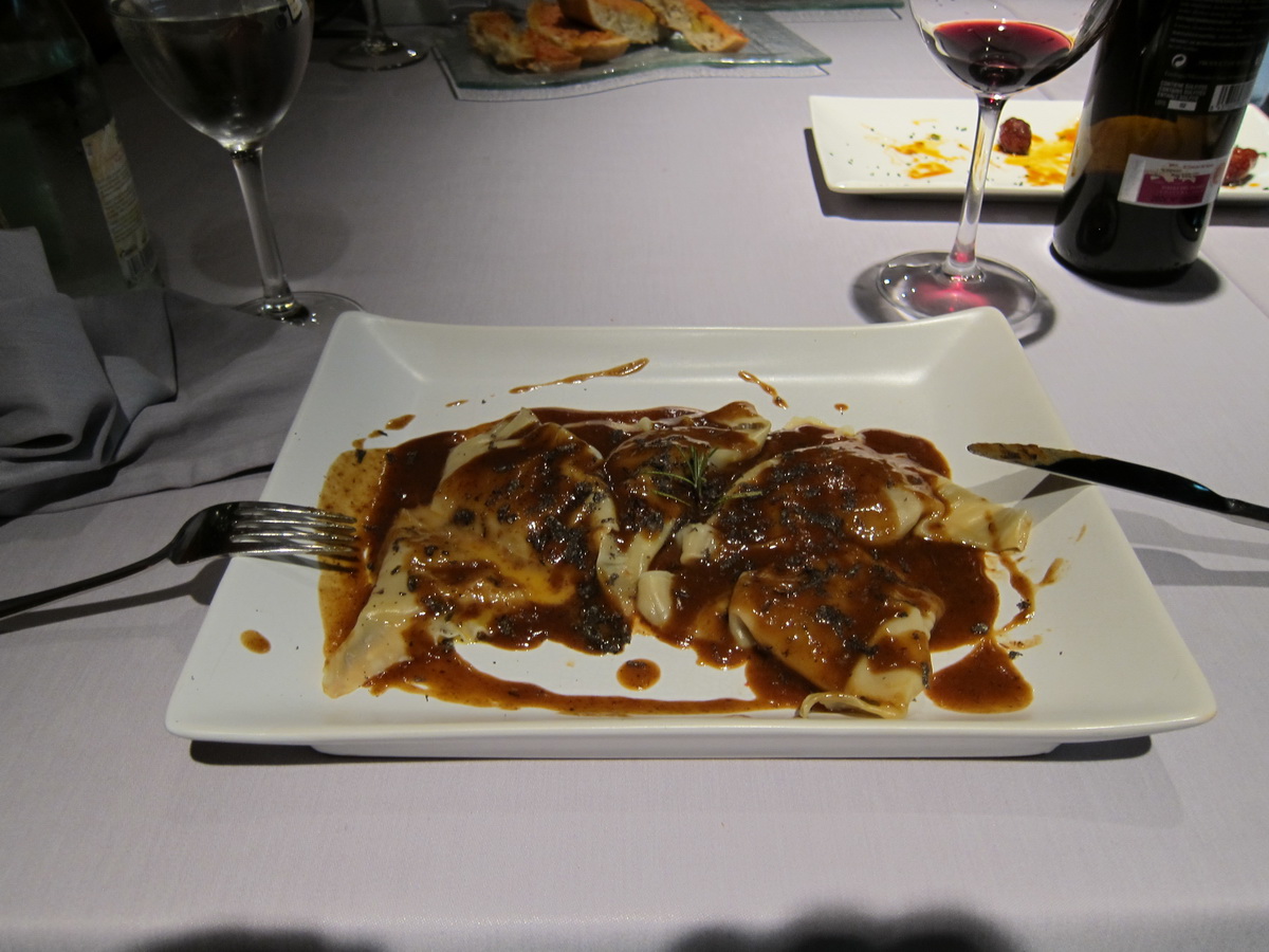 Вот это я запомнил - вкуснейшие плоские равиоли со специальным соусом и морепродуктами. Мы их потом постоянно заказывали - отличные.