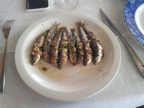Сардины. Похоже, вареные. Есть это совершенно невозможно.