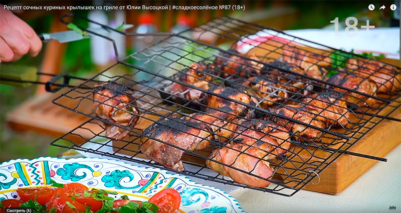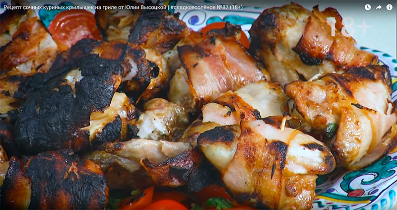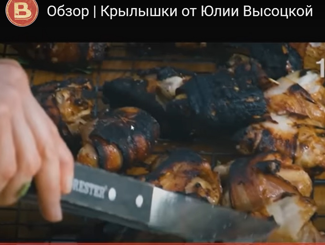 Когда крылышки с беконом окончательно сгорают, Юля произносит фразу "Снимаем с огня вот эту вот красоту", после чего демонстрирует вот эту вот красоту крупным планом.