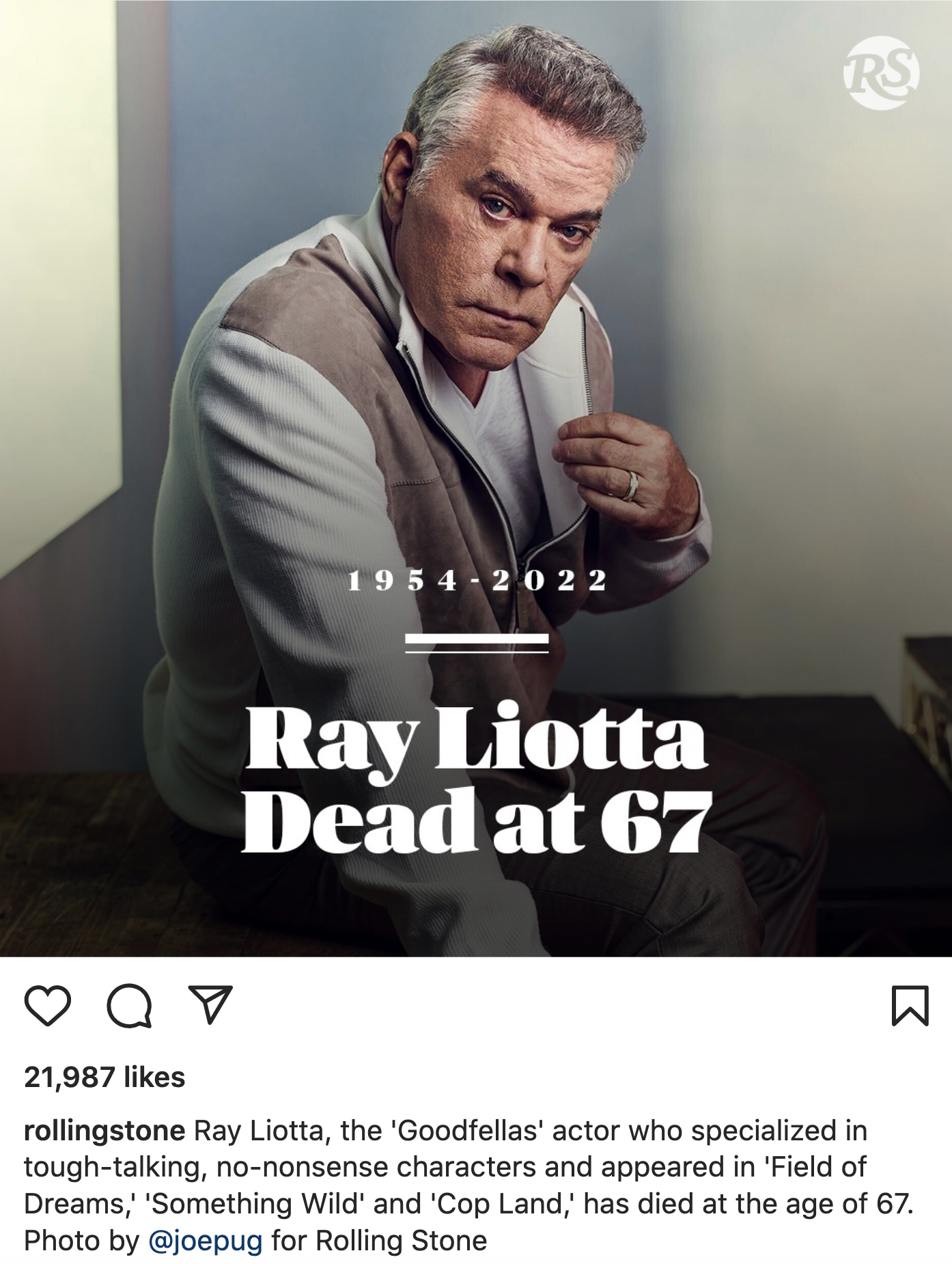 Upd: Пошли подтверждения. RIP, Рэй Лиотта, RIP.