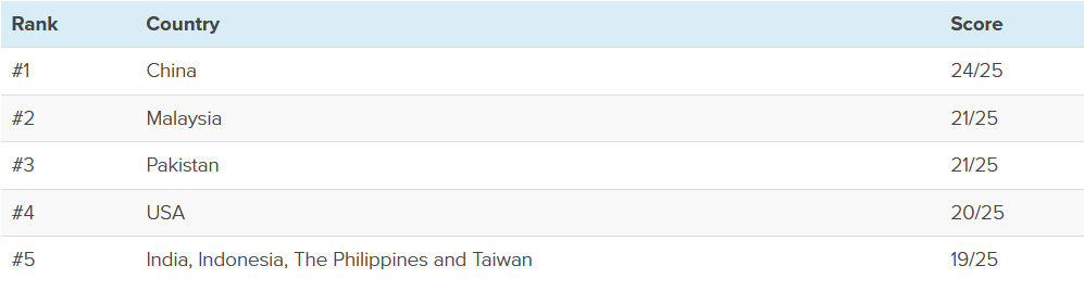 Что эти баллы означают? В Китае собирают 24 из 25 вариантов данных и это плохо, а в Ирландии - только 11 и это хорошо? Большой брат следит за нами?