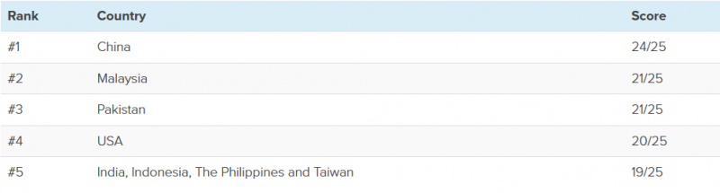 Абсолютно не понятно, как этот рейтинг строился. Индия по сбору биометрии впереди планеты всей. Малазия вообще первой ввела биометрические паспорта.