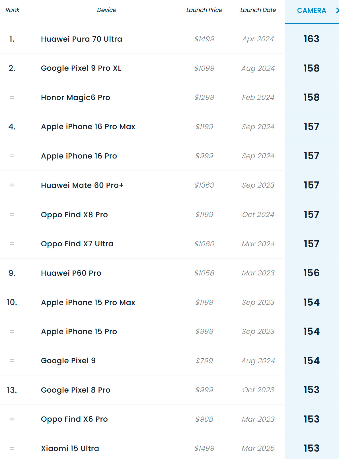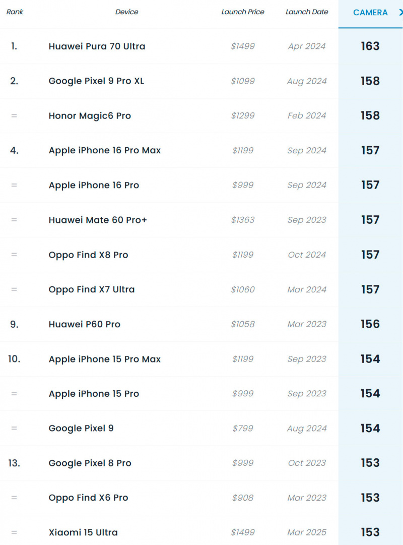 Увы. Если выбирать телефон исключительно по этому рейтингу, то внезапно оказывается что это рейтинг камер только среди смартфонов.