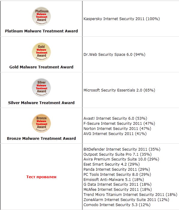 +1 в пользу Avira. До этого поочередно были якобы бронзовые Avast и F-Secure - оба пропускали вирусы только так.