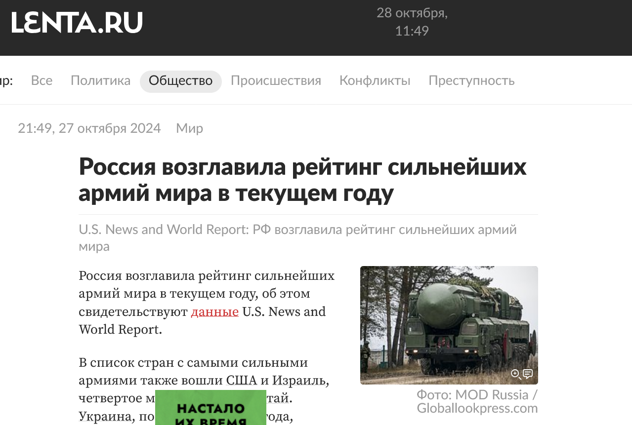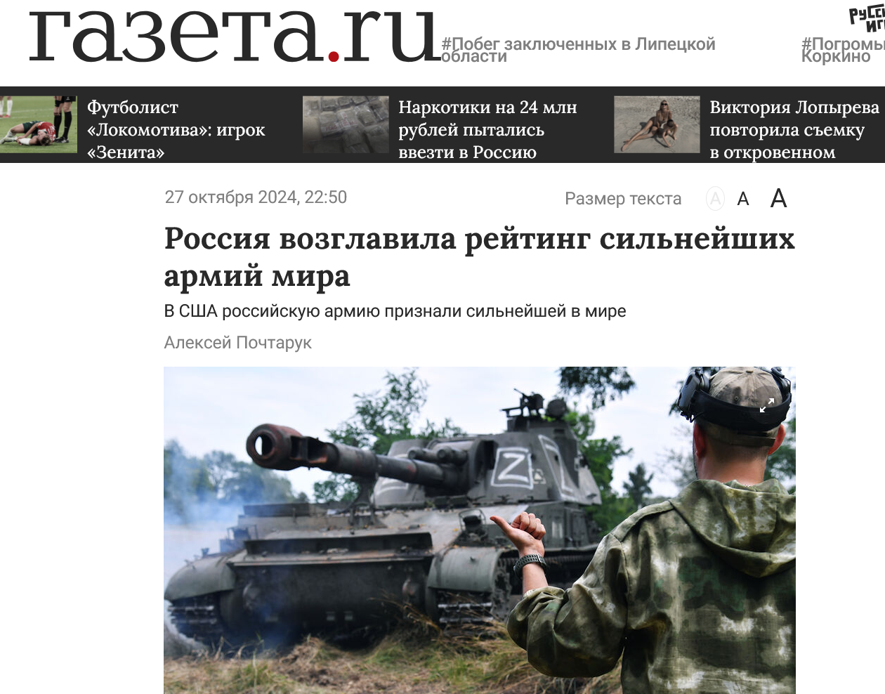 А тут внезапно во вполне уважаемом американском издании USNews опубликовали "рейтинг самых сильных армий мира", и  армию РФ там поставили аж на первое место!