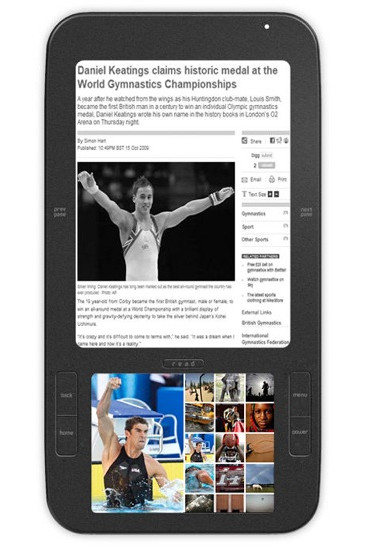 Основная идея в том, что с помощью встроенного КПК можно выходить в Интернет, скачивать оттуда книги и другие документы, а потом просматривать их в ридере. В общем-то, это, с одной стороны, удобно, но устройство, на мой взгляд, получилось чересчур громоздкое. Также непонятно, откуда можно будет скачивать книги - магазины Amazon и Barnes&Noble устройство, судя по всему, не поддерживает. Цена будет в районе $400.