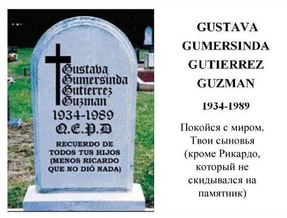 Однако, выходит, что Рикардо — единственный сын покойной, обессмерченный упоминанием здесь 😄 Имен тех, кто скидывался, никто не знает.