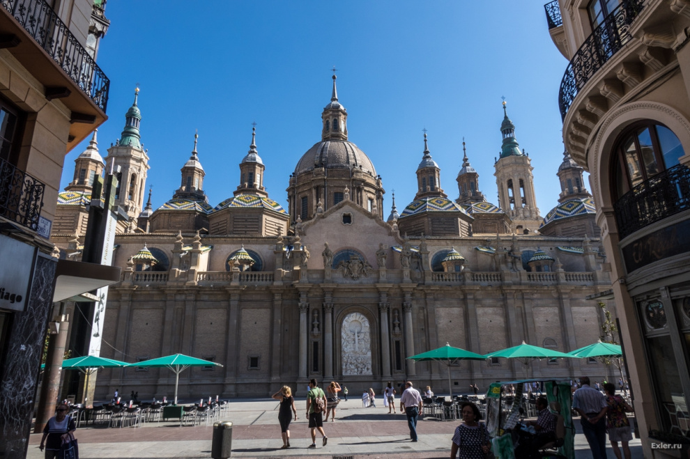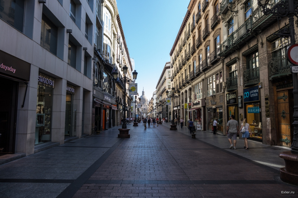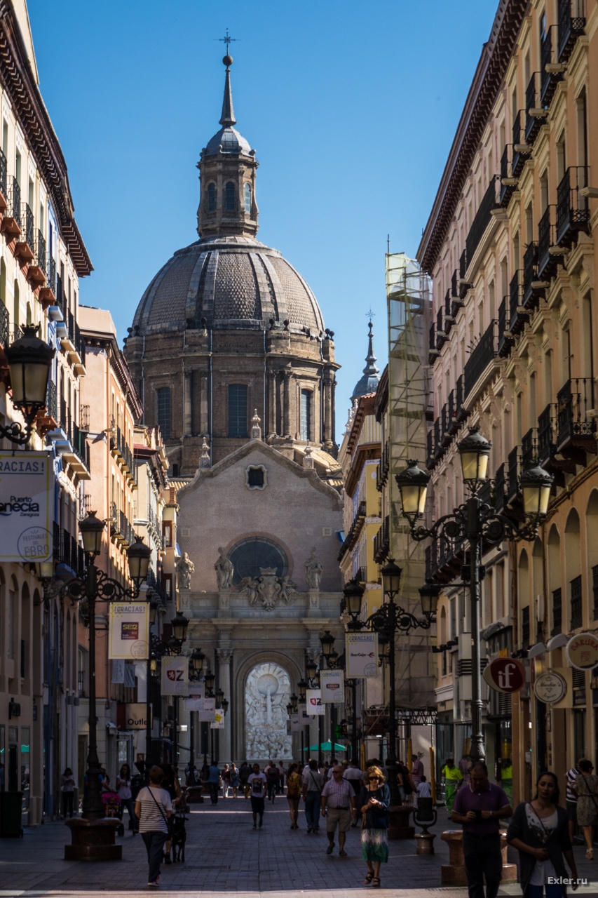 Основной музей - римский форум - находится в двух шагах от храма Сан-Себастьян. Мы к нему отправились вот по такому сарагосскому "Арбату", в конце которого виднеется Базилика де Нуэстра Сеньора дель Пилар.