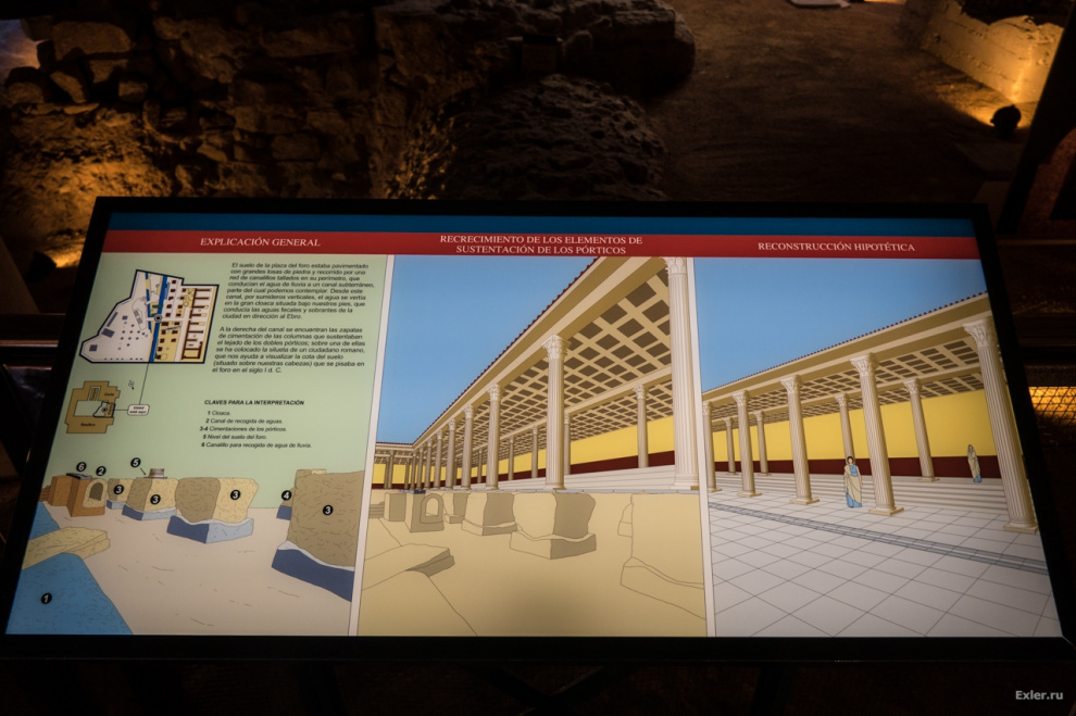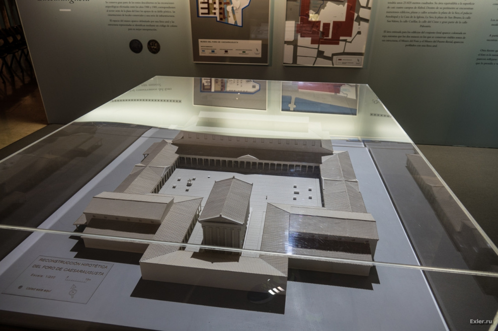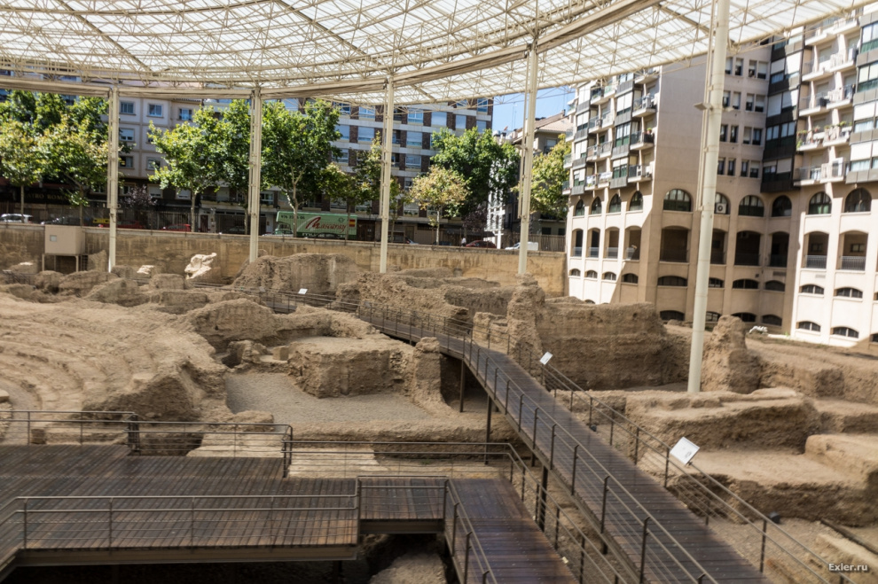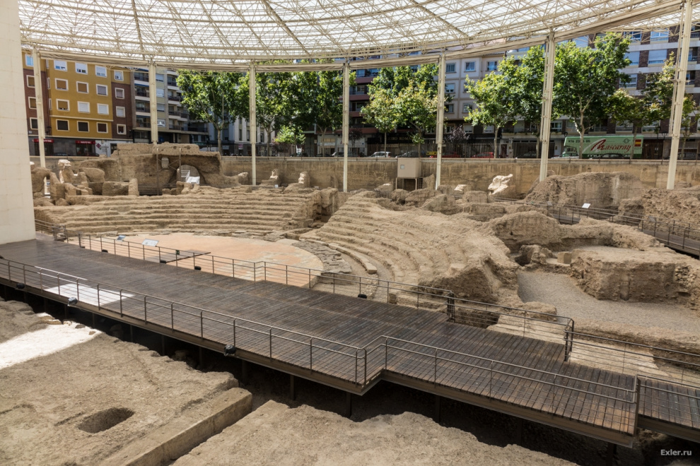 Город Сарагосу основали римляне в 24 году до н.э.. В городе археологи производили раскопки и обнаружили несколько достопримечательностей, относящихся к римскому поселению. Это римский форум, театр, термы и порт. На всех этих четырех точках сделаны небольшие музеи, в трех из которых мы побывали.