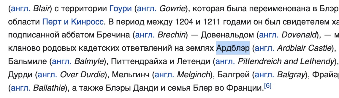 P.S. В вашем телеграм-канале следует исправить "Ардблейр" на "Ардблэр" - см., к примеру, ru.wikipedia.org .