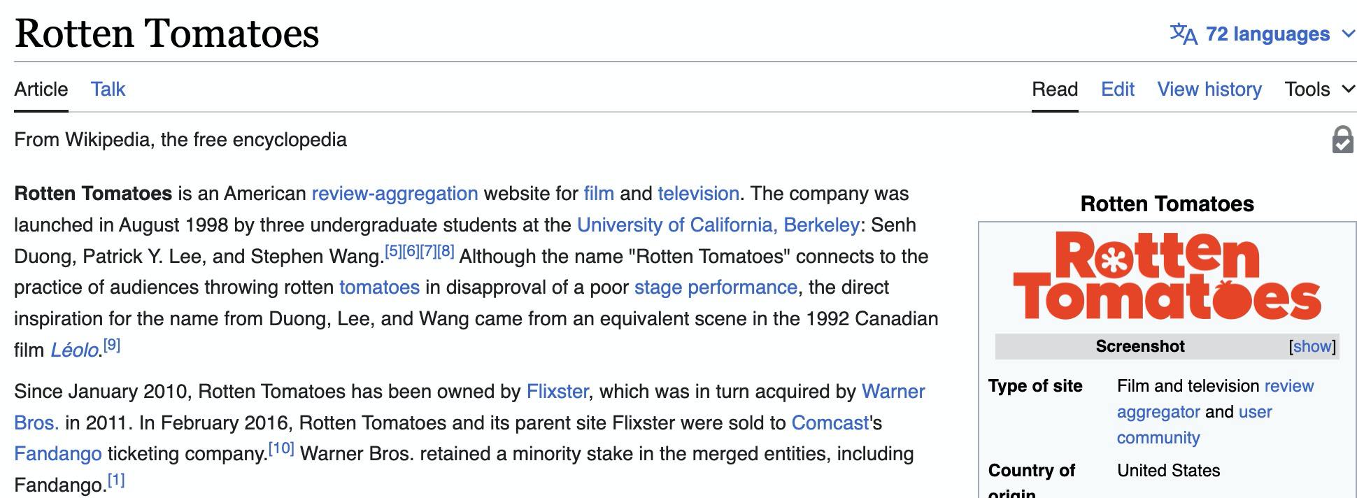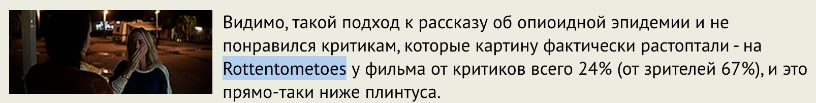В рецензии на фильм "Продавцы боли" исправьте на "Rotten Tomatoes" - именно через пробел и "ma", а не "me".