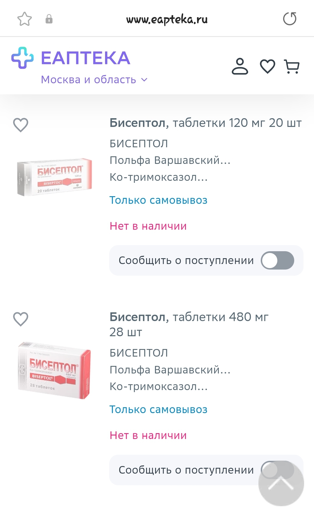 И с другой стороны, про "всё есть в магазинах". На полном серьёзе, не подскажете, где в Москве купить бисептол? Да, слово "дженерик" я тоже знаю, спасибо. А бисептол?