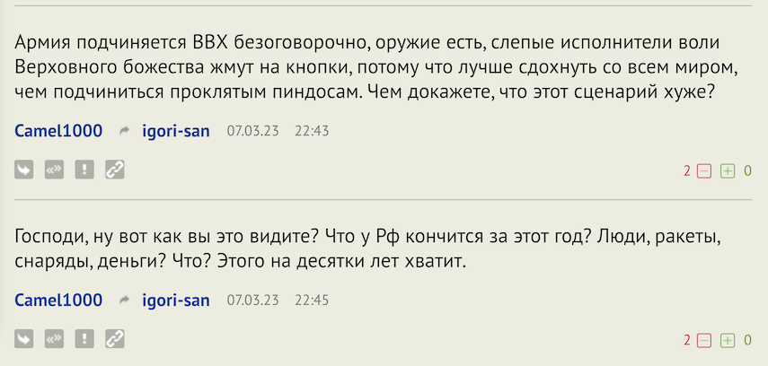 P.S. Заранее предвидя наиболее частые возражения – нет, РФ не может бросить на один фронт сразу все силы страны (да и никто не может). Поэтому все вот эти вот мысли про "общую численность армии РФ" – заведомо ошибочны. Особенно в ситуации "с голой жопой". А чего в реальности стоят на поле боя несчастные "мобики" – видно уже прямо сейчас.