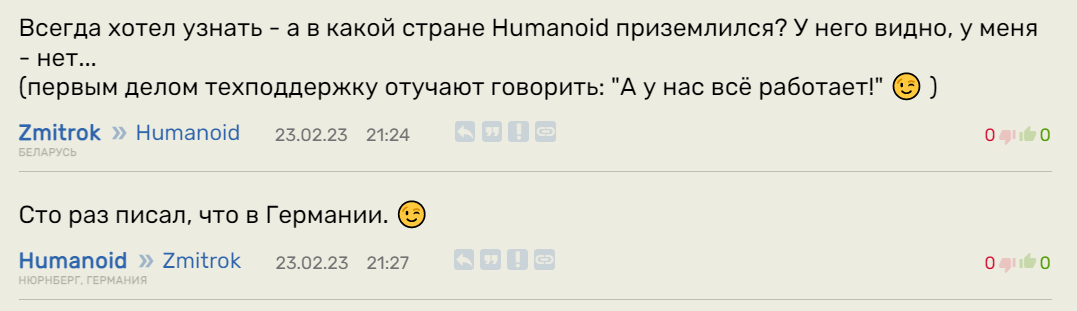 Всегда хотел узнать - а в какой стране Humanoid приземлился? У него видно, у меня - нет...