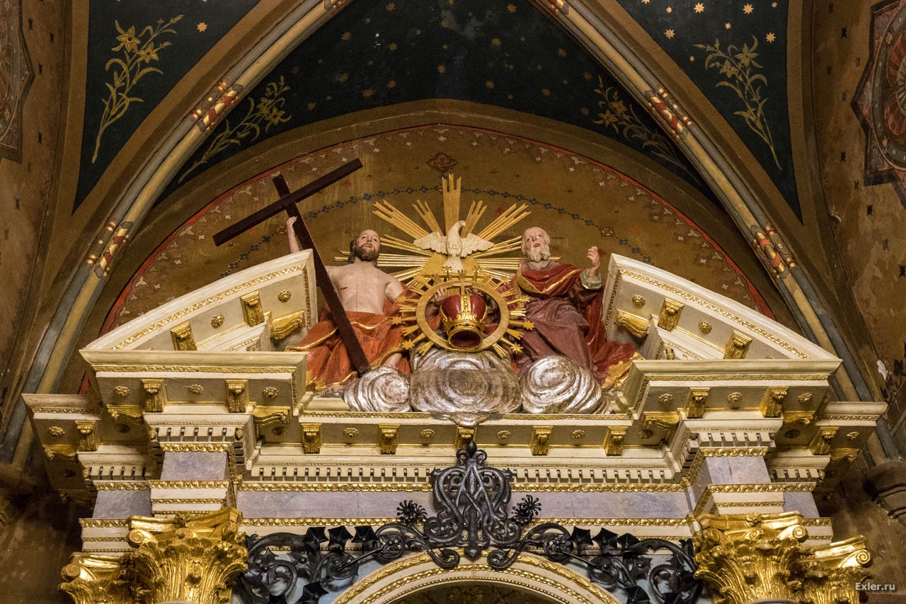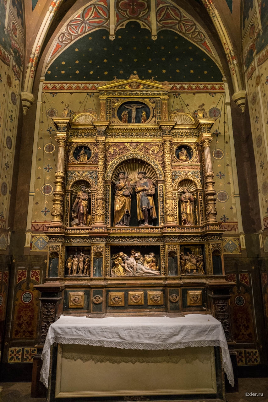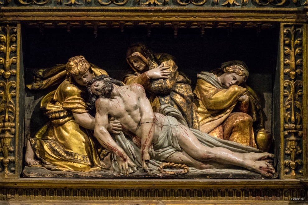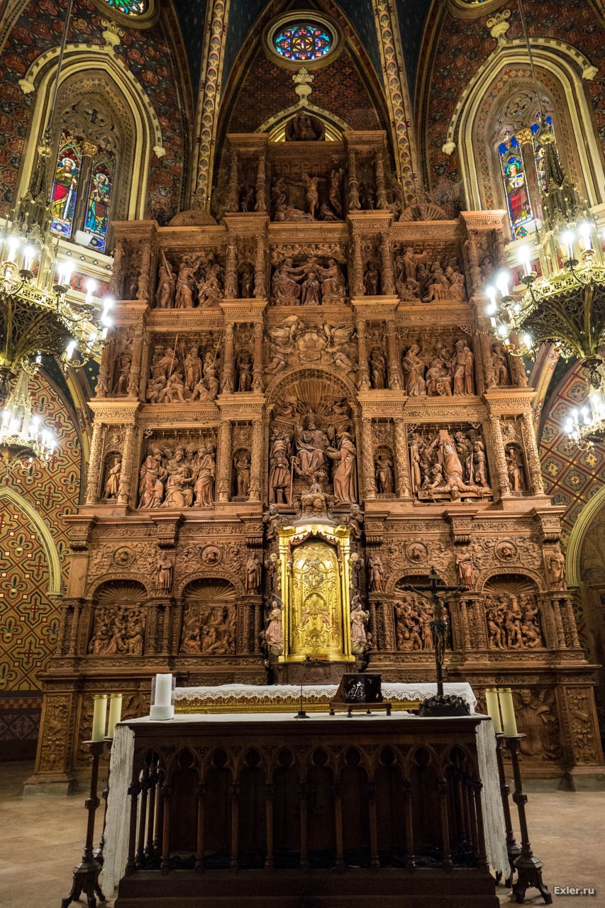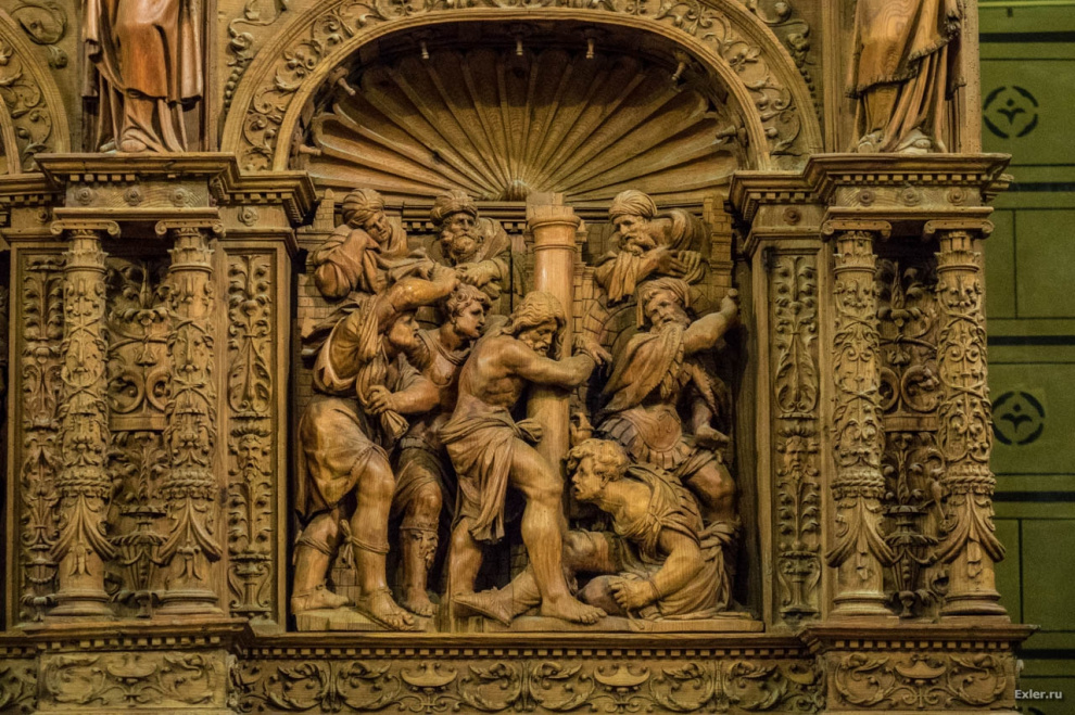 Совершенно потрясающее панно на алтаре, целиком созданное из дерева - это его натуральный цвет, панно не красили.