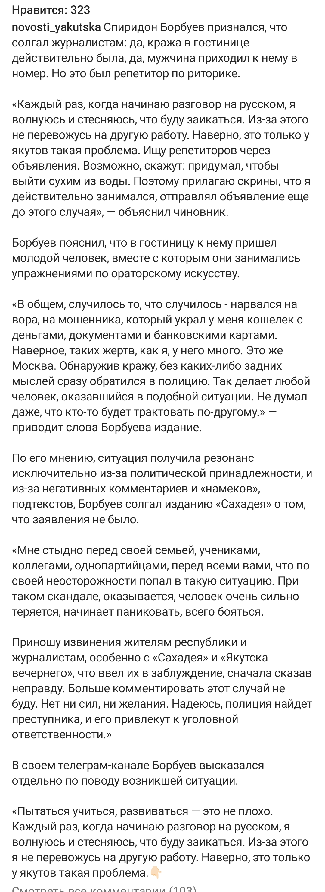 UPD: Впрочем, якутским СМИ Борбуев заявил, что никакого Ивана он в номер не приглашал, ничего у него не украли, а этот «вброс, связывает с выборами главы Верхневилюйского района». (Отсюда.)