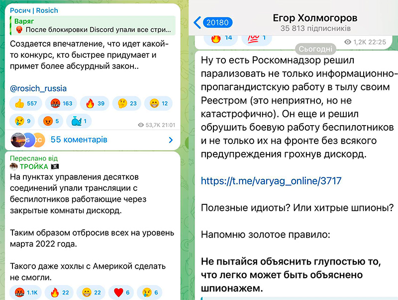 Но вот с Дискордом особенно симпатично получилось, потому что Дискорд используют не только школьники, а он еще очень активно используется на войне в Украине путинскими орками. И по этому поводу среди Z-гнид со вчера идет страшный вой на болотах, за которым наблюдать - просто именины сердца.