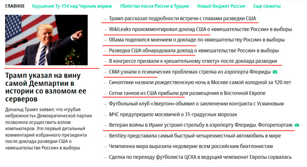 Про количество "американских" новостей в российских СМИ уже давно все отшутились. Ведь про свое можно только всякую незначительную ерунду освещать, а что-то серьезное - ни-ни: "раскачивают лодку", "вырвано из контекста" и т. п.