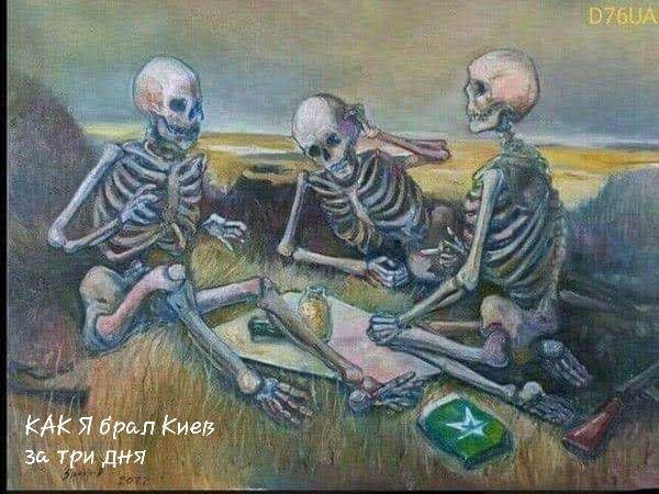 Слава богу, теперь все выяснилось! Россия победила Украину за три дня. Взяли Киевщину, Гастомельщину и остров Змеиный. Не, реально, Симоньян врать не будет. Сказали Киевщина за три дня - вот за три дня и справились. И только присел русский солдат отдохнуть от трудов ратных, как тут же ка-а-а-а-а-а-ак понабежали солдаты НАТО, которые спят и видят, как бы захватить Севастополь, так и надавали русскому солдату по сопатке руками ВСУ. Но это силы НАТО! Руками ВСУ. А руки у ВСУ - крепкие, сопатка у воина-победителя распухла и теперь в дверь не пролазит. Но солдат НАТО обязательно будет побежден! И Киевщину снова возьмут за три дня. Может быть, даже за два дня. Но сначала, конечно, нужно взять Бахмут. Который с августа уже раз восемь взяли. И деревню Макеевку. После этого - сразу на Киевщину и Гастомельщину. Маргарита лично в бой поведет воинов-богатырей!