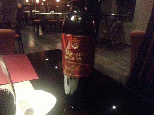 Заказали в кабачке бутылочку "Маркеса де Касереса"- это недорогая и очень известная в мире риоха. В Испании я это вино часто покупаю. За шесть евро. Здесь с нас за него взяли ровно 60 евро. Душевно, что еще сказать...