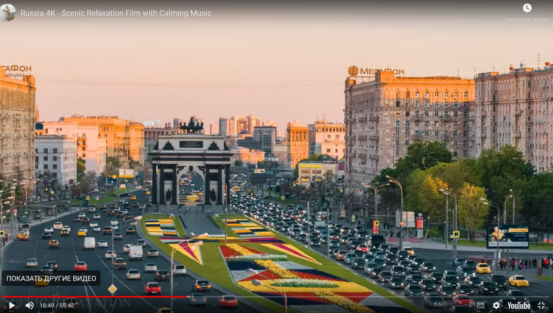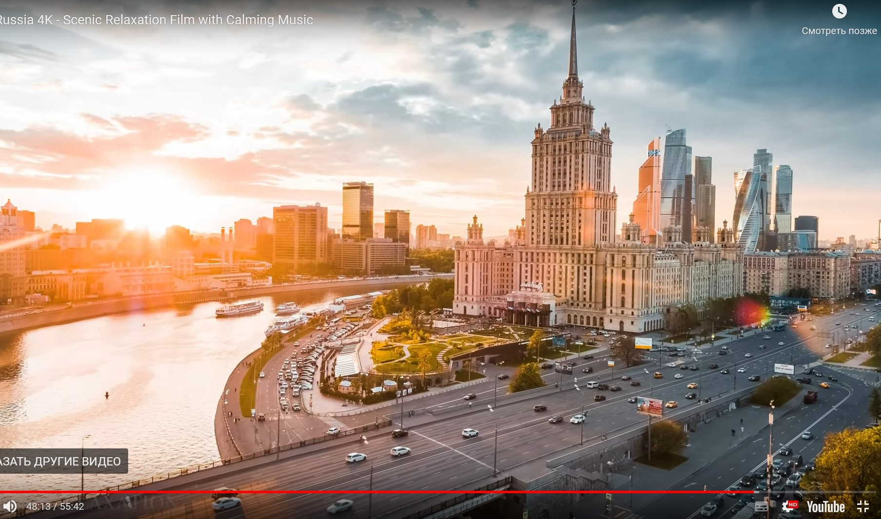 55-минутный ролик с красивейшими местами России, снятыми на дрон, сопровождаемыми расслабляющей музыкой. Насыщенность цветов, как обычно в таких случаях, чрезмерно задрана, но тут уж ничего не поделаешь. Зато красиво и впечатляюще. Вот жаль только, что не указывают, какие именно места там сняты. Что-то я, конечно, узнал, но именно только "что-то".