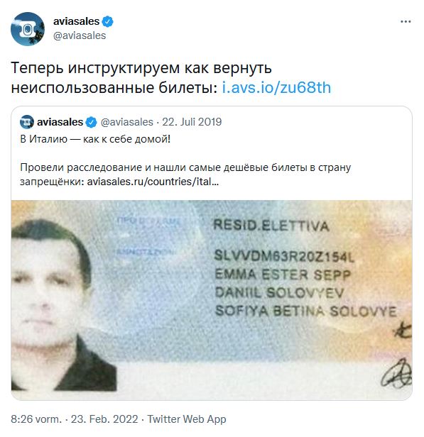 Первый твит 2-летней давности, когда у Соловьева итальянский ПМЖ засветился.