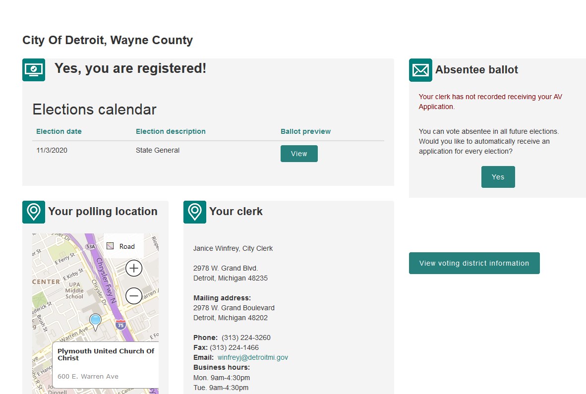 Проверка статуса бюллютеня mvic.sos.state.mi.us