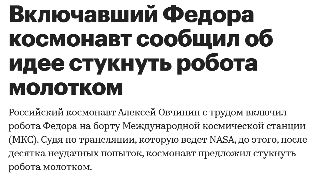 А робот Федор что делал? У него не то что ширинки, даже пипирки нет. Вот тебе и причина неудачной стыковки!