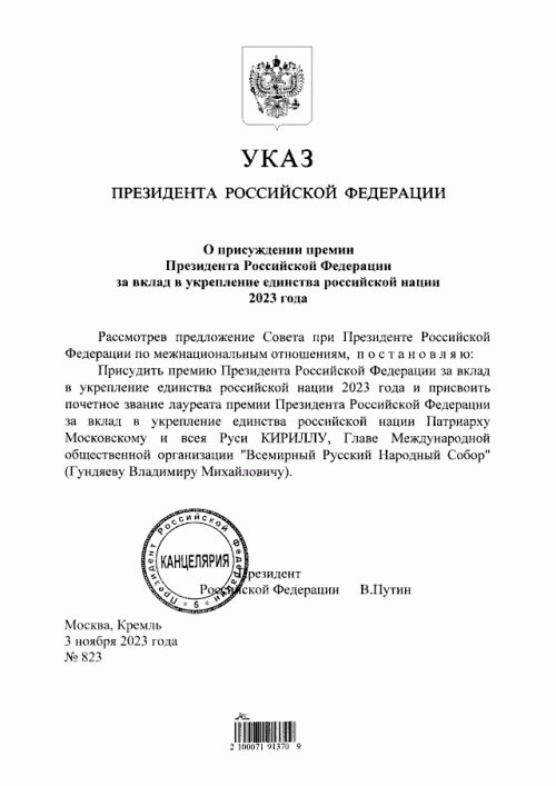 Кстати, а премия - это же про деньги? Сколько там денежек-то вручат Гундяю за укрепление единства? Мне просто интересно.