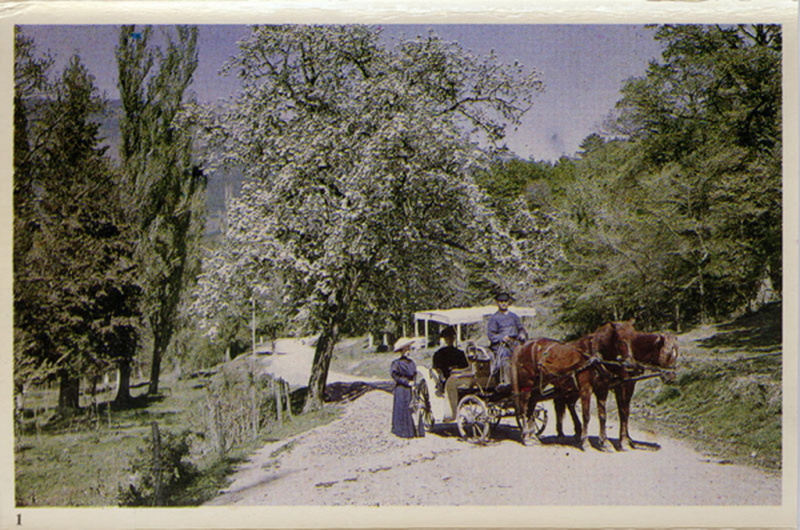 В записи "Уникальные цветные снимки Англии конца 20-х прошлого века" я писал о люмьеровском автохромном методе, который в те годы был распространен. При этом использовались стеклянные пластины с нанесением на них окрашенных определенным образом зерен картофельного крахмала. При съемке на пластине получался диапозитив, который в таком виде и хранился.