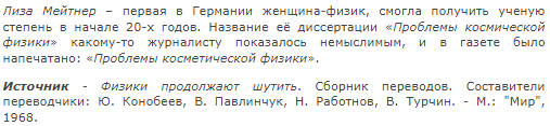 Но то, что в её честь назван 109-й элемент таблицы Менделеева — мейтнерий — остаётся фактом! 😉