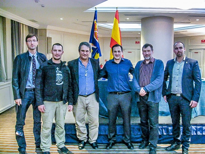 Шевчук, Гариев (первый и второй слева) и Воробьев (второй справа) встречаются в Мадриде с Иваном Бенедетти и лидерами "Национальной демократии".