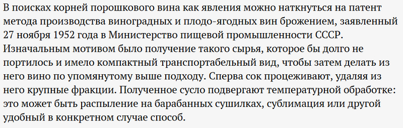 Однако, что интересно, по запросу "порошковое вино" в Google по крайней мере первые три статьи - совершенно правильные. Это потом идет тот дебилизм, который я процитировал выше.