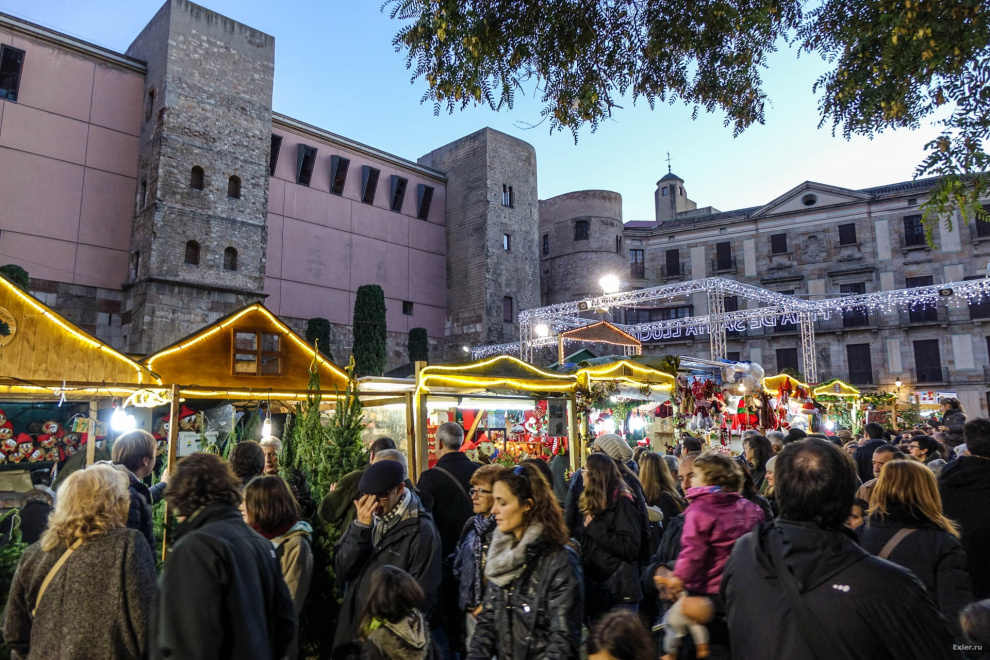 В Барселоне на площади у Кафедрального Собора уже вовсю работает рождественская ярмарка, на которой в основном продается всякая рождественская символика.