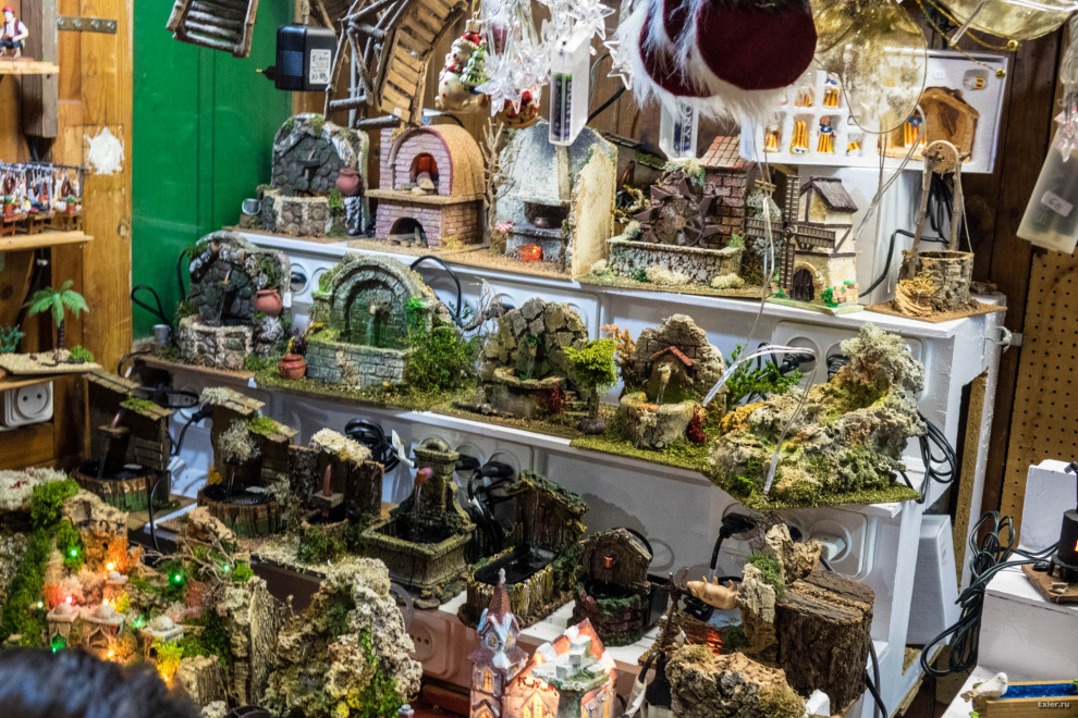 А вот стенд с механическими Дедами Морозами, а точнее - Папами Ноэлями, как они тут называются. Вот эти два Ноэля от хлопка ладонями начинают лазить вверх-вниз по веревочке.