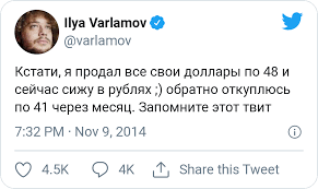 P.S. Прогнозы делают, да. Утешительные. В хорошем варианте будет всего 150 рублей. В плохом - 180. И это говорит не "Запомните этот твит", а декан факультета международной экономики Финуниверситета Павел Селезнев.