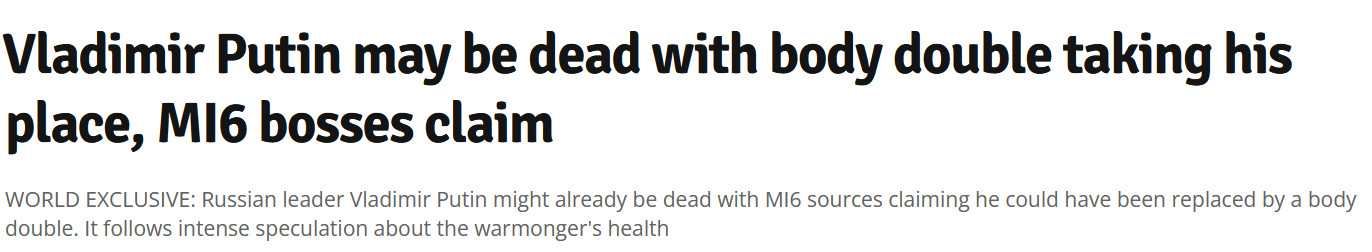 Вчера четыре британских таблоида - Daily Star, The Sun, Mirror и Express - выпустили вот такие заметки со ссылкой на руководителя MI6.