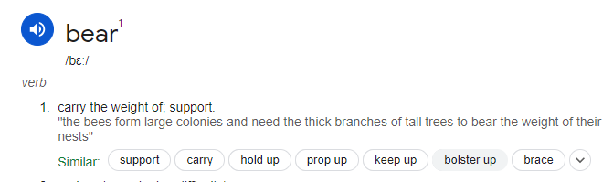Не понял вашего выпада. Человек старался. Я, вот, английский знаю очень плохо и о другом значении слова "bear" сам вспомнил лишь чуть раньше, чем он привёл подсказку.