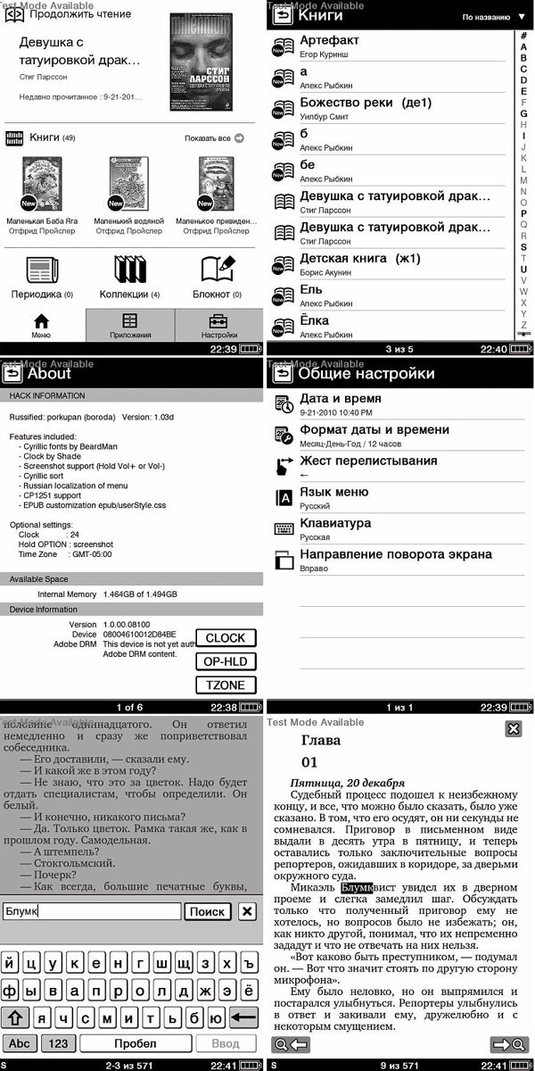 Владимир Борода уже выпустил прошивку для Sony Reader PRS-350. Вот инструкция по установке. Там все предельно просто: скачали и разархивировали папку, подключили ридер, запустили пакетный файл - подождали, когда перезагрузится. После этого PRS-350 не только начнет нормально понимать кириллицу, но там еще появится русский интерфейс и русский поиск. (Скрины ниже под катом.) Что еще желать?