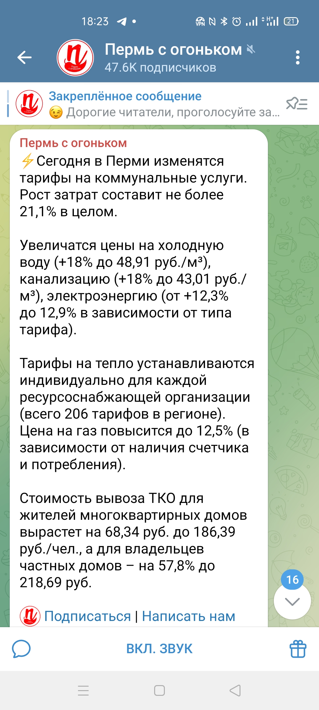 Сегодня в России рекордно подорожала коммуналка. В Москве рост достиг 23 %, в некоторых городах — почти 40 %, а в среднем по стране — 13 %. Теперь за куб холодной воды придётся отдать 65,77 ₽, за горячую — 312,50 ₽, а за гигакалорию отопления — до 3 738,37 ₽. Куб газа для плиты и подогрева воды стоит 9,71 ₽ (на 8 % больше год к году), газ для отопления подорожал сразу на 20,6 % до 8,54 ₽/м³; электричество выросло в цене на 12,6–22,8 % в зависимости от тарифа, а вывоз мусора — на 15 % до почти 973 ₽ за кубометр. (Отсюда.)