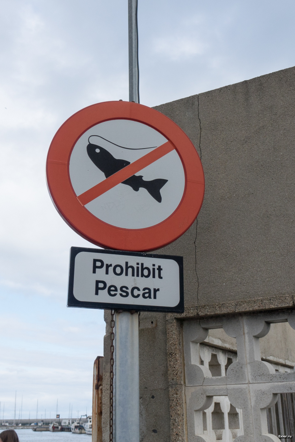 Знак "Ловить рыбу запрещено" несколько экзотично смотрится в рыболовецком порту, однако на самом деле это просто запрет ловить рыбу удочкой в порту: рыбаки с удочкой будут мешать профессиональным рыбакам, поэтому идите, ребята, морем да по бережку, как бы намекает этот знак.