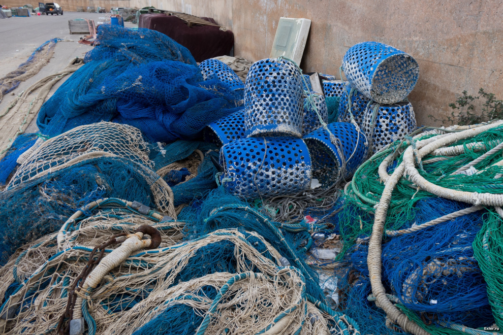 А это уже другой вид рыболовного снаряжения - железные ловушки, которыми бороздят море и туда попадаются всякие морские обитатели.