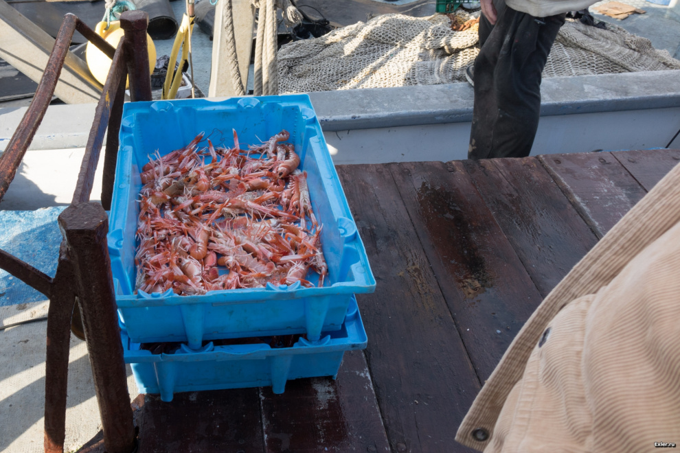 Акула начинает выгружаться. Сначала пошли лангустины - это штука дорогая.
