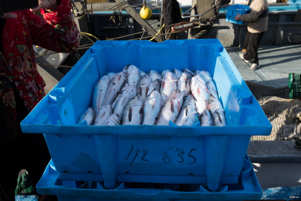 Кстати, часть этого купленного улова буквально через полчаса окажется в магазинах. Поэтому неудивительно, что в рыбных магазинах и рыбных отделах все такое наисвежайшее: обычно проходит максимум час от разгрузки до попадания рыбы и морепродуктов на прилавки. И биржа работает два раза в день - днем и вечером.