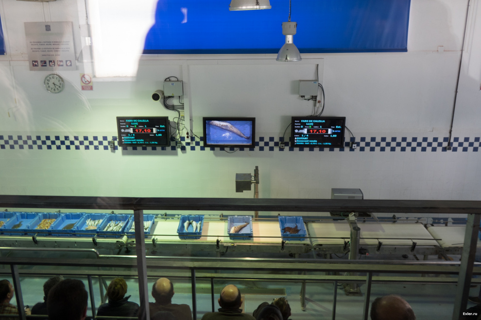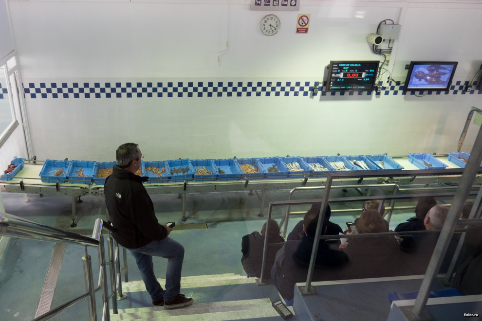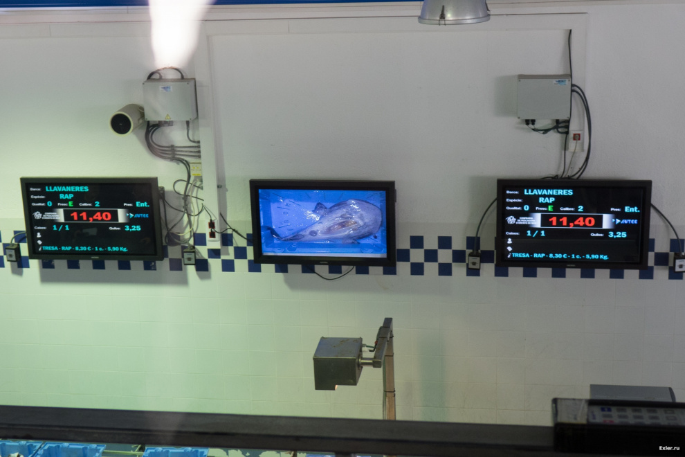 Все происходит почти мгновенно: на экранах появляется очередной лот (контейнер), высвечивается цена за весь контейнер (это может быть одна большая рыбина, много маленьких, несколько лангустинов - сколько наловили), вес, продавец (рыбак).