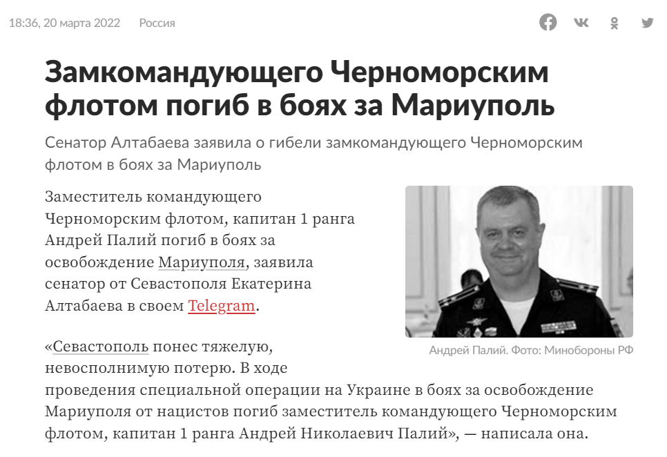 На сегодня уже 5 генералов (включая двух командармов) и более двух десятков штаб-офицеров - причем несколько, как этот Палий, на генеральских должностях. Уровень потерь, конечно, внушает.