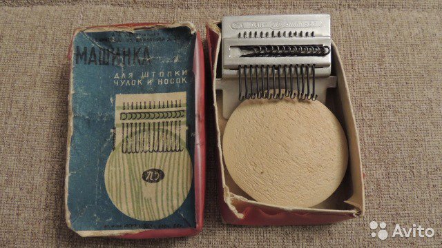 Советской промышленностью было так-же освоено производство девайса "машинка для штопки чулок и носков"