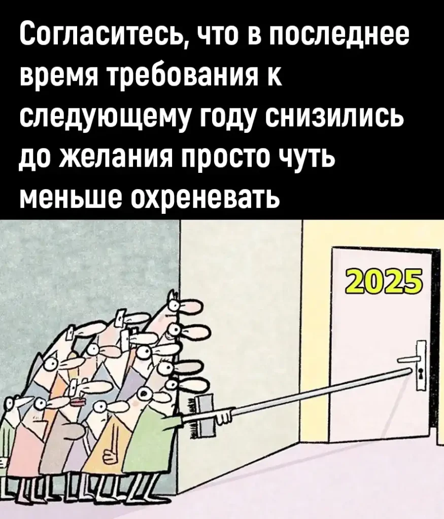 С Новым Годом!Надеюсь, хоть кто-то верит в любое маленькое чудо, иначе вообще тоскливо жить. P.S. Например, "я устал, я ухожу" 😄