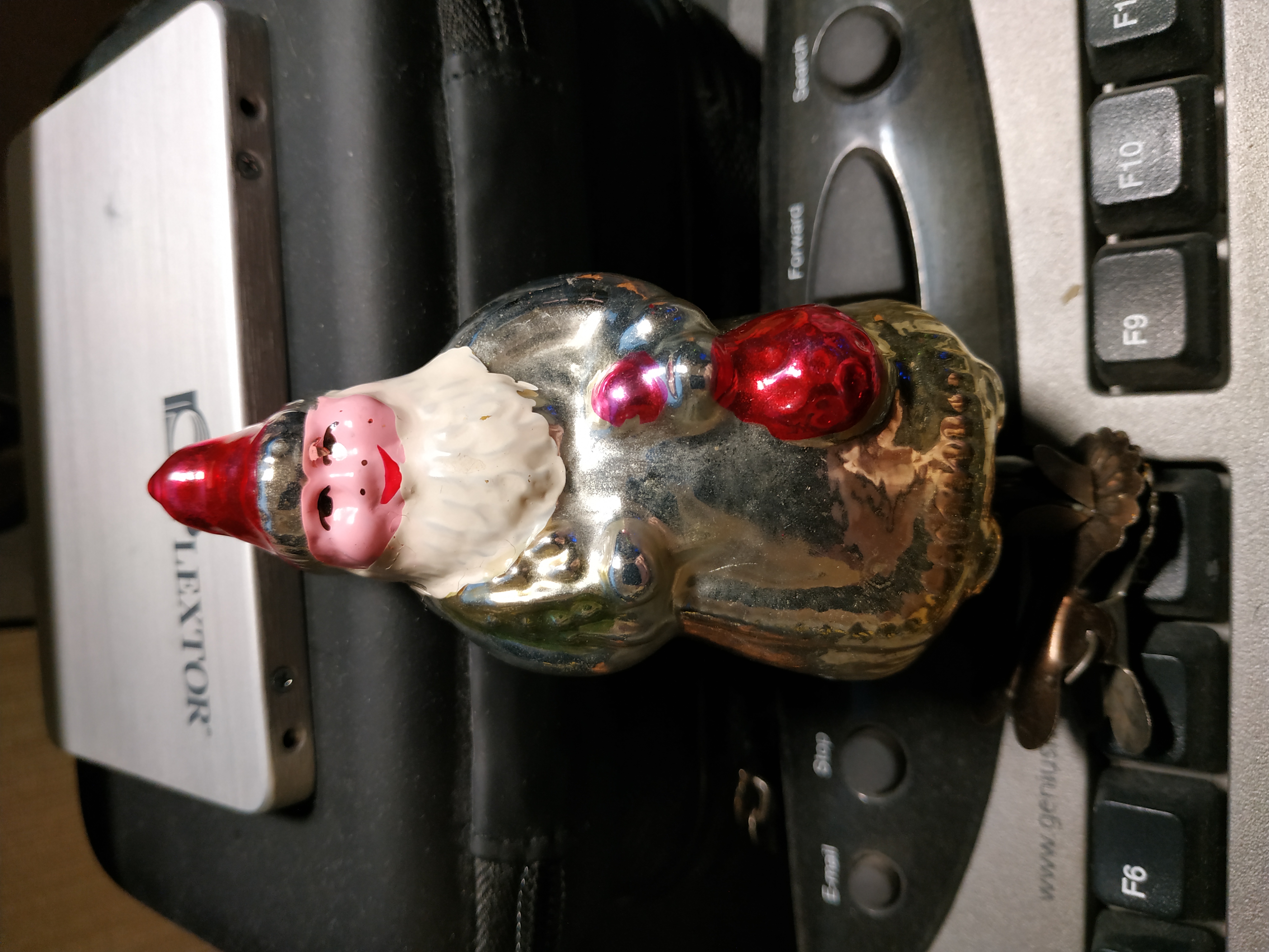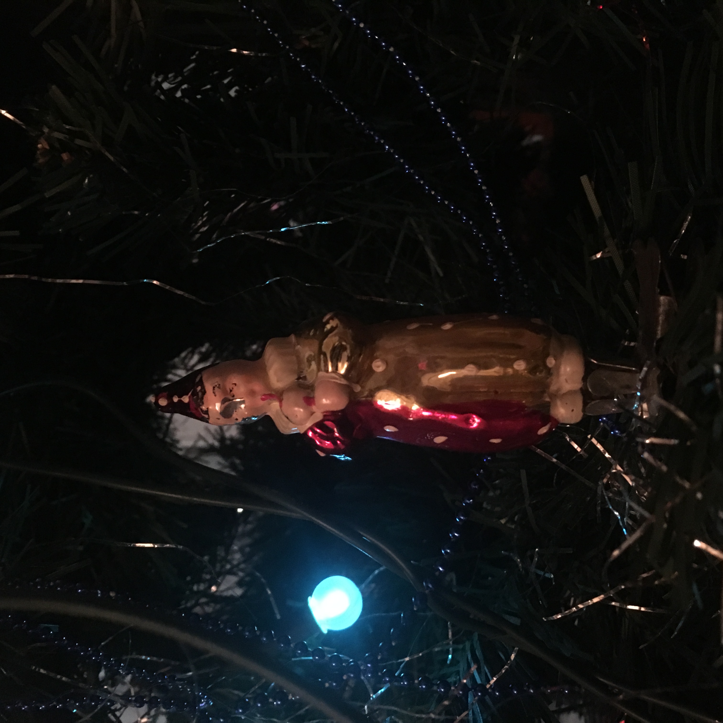 Поделюсь фрагментом нашей новогодней ёлки с моей любимой игрушкой из 50-х, которая висела ещё на ёлочке в детстве моей мамы.